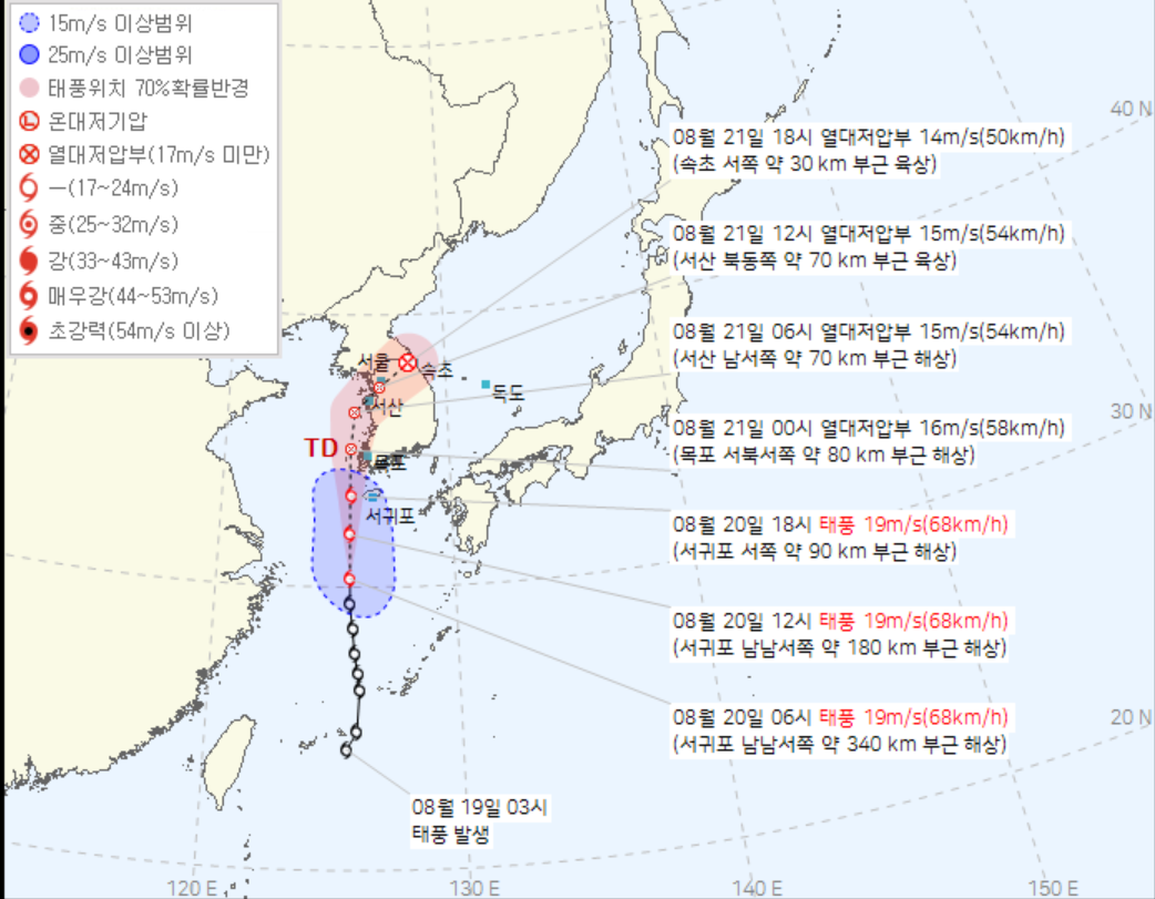 8월 21일 태풍 경로